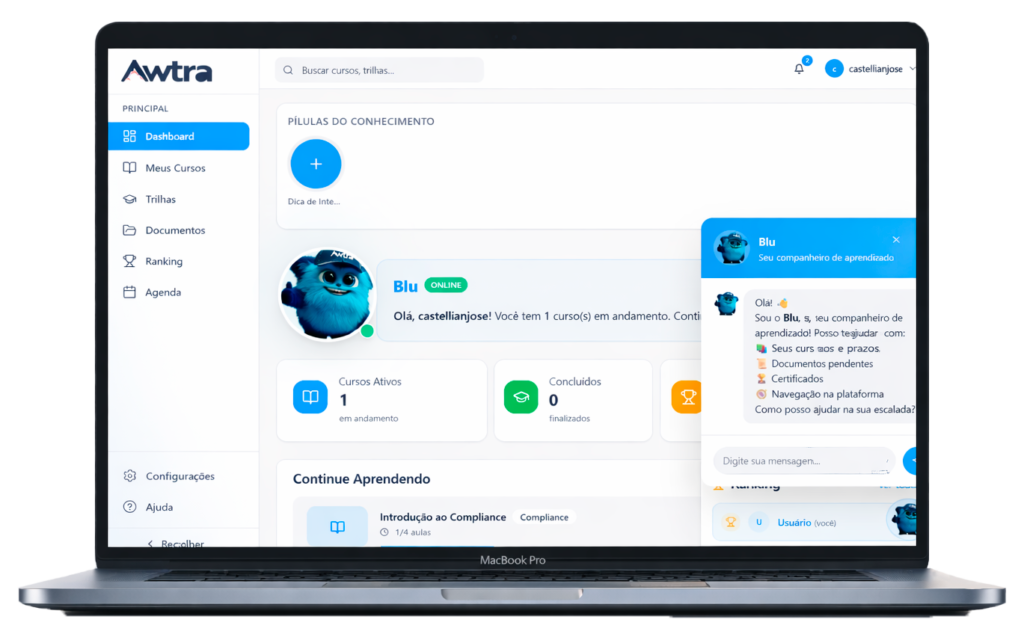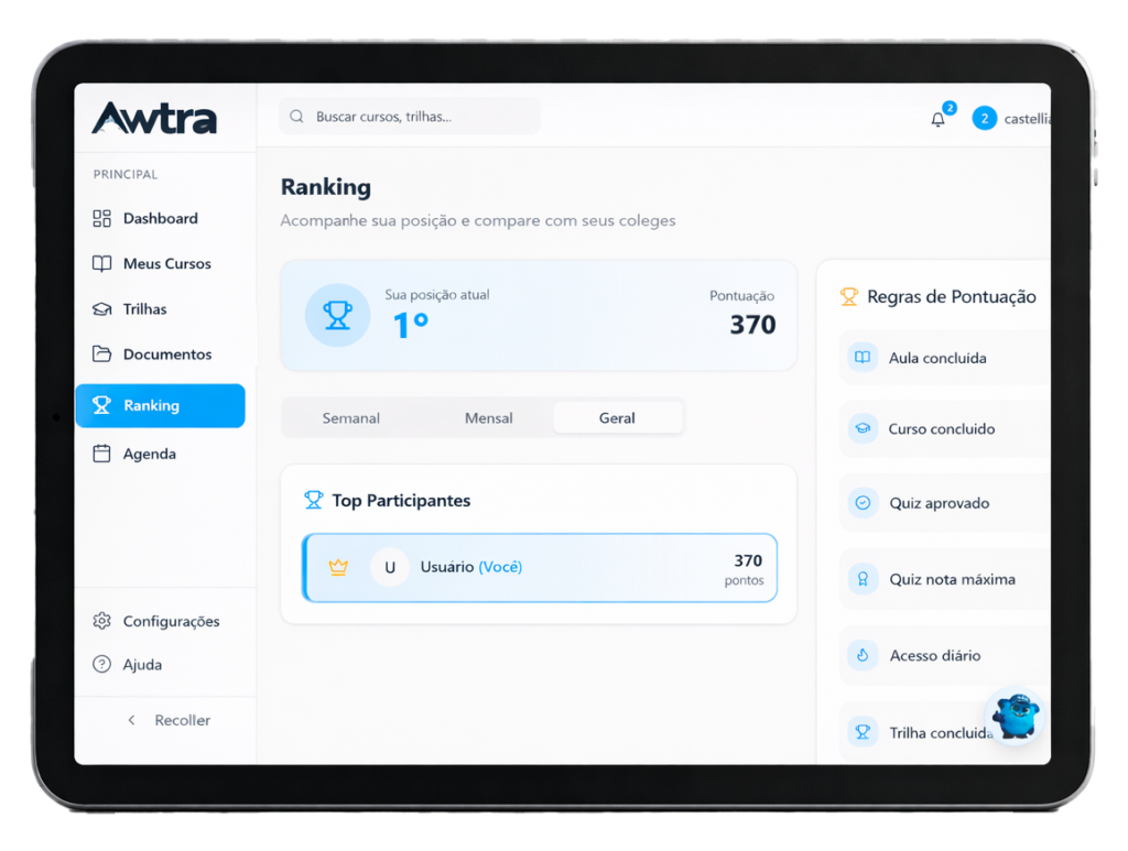 Tenha uma visão clara e personalizável do progresso dos treinamentos, com dados por área, usuário, tempo de execução e relatórios exportáveis.